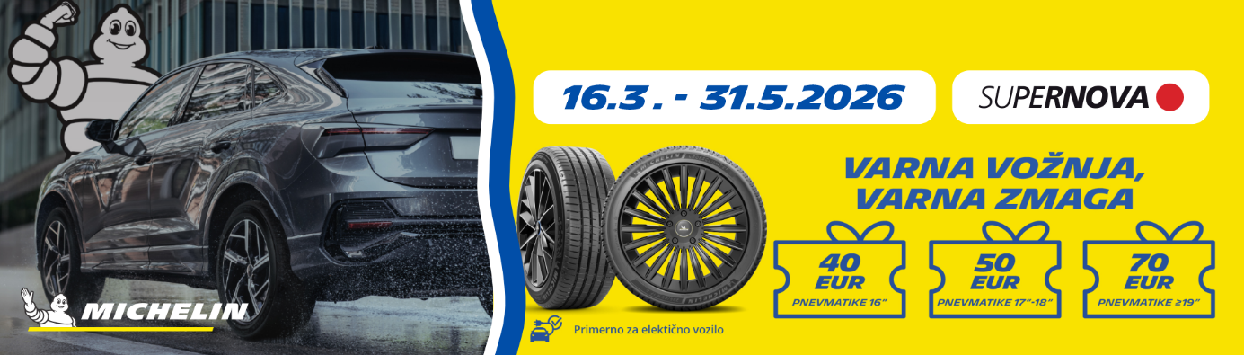 Akcija velja od 16. marca do 31. maja 2026 ob nakupu 4 letnih ali celoletnih pnevmatik Michelin na istem računu.